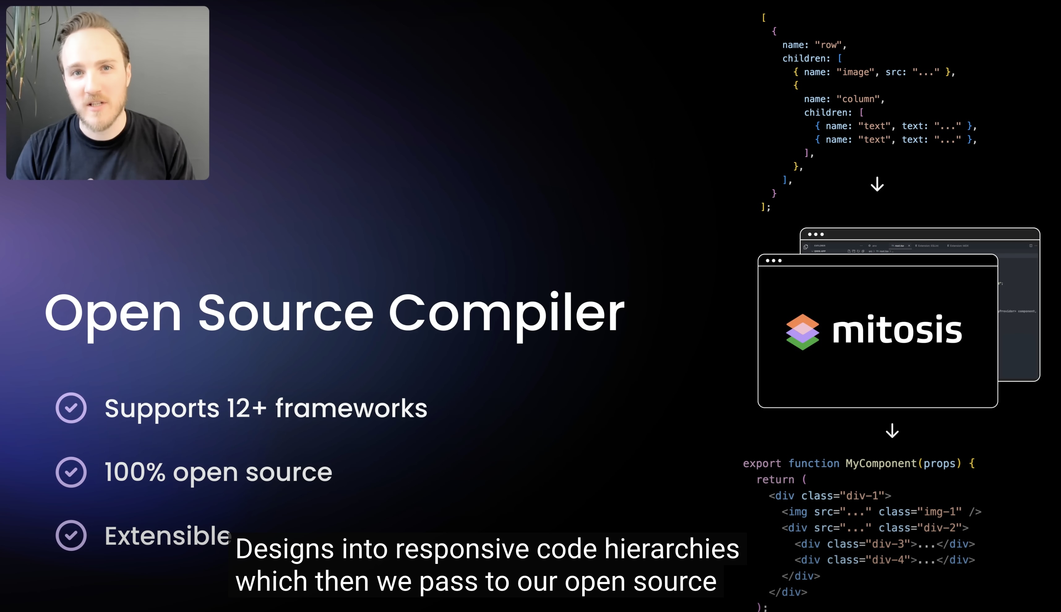 - Mitosis:將上述輸出的階層資料,透過 Mitosis 這套由 Builder.io 所開源的特製編譯器,編譯成各個前端框架的程式碼: