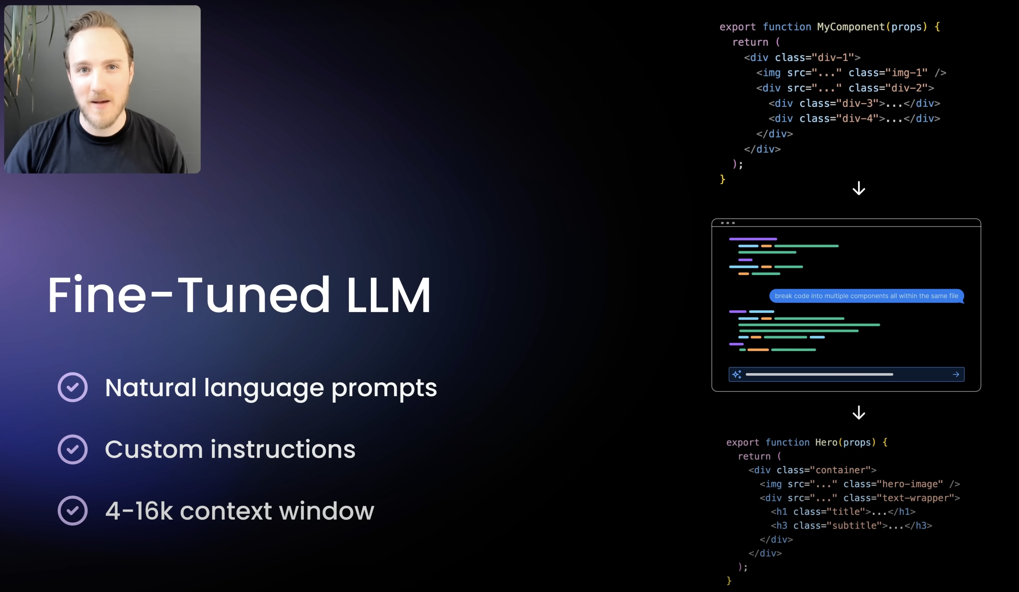 - Fine-tuned LLM:最後才將這些比較粗糙的程式碼,透過 LLM,參考你設定好的 Custom Instruction prompts,去 fine-tune 出接近你需求的程式碼:
