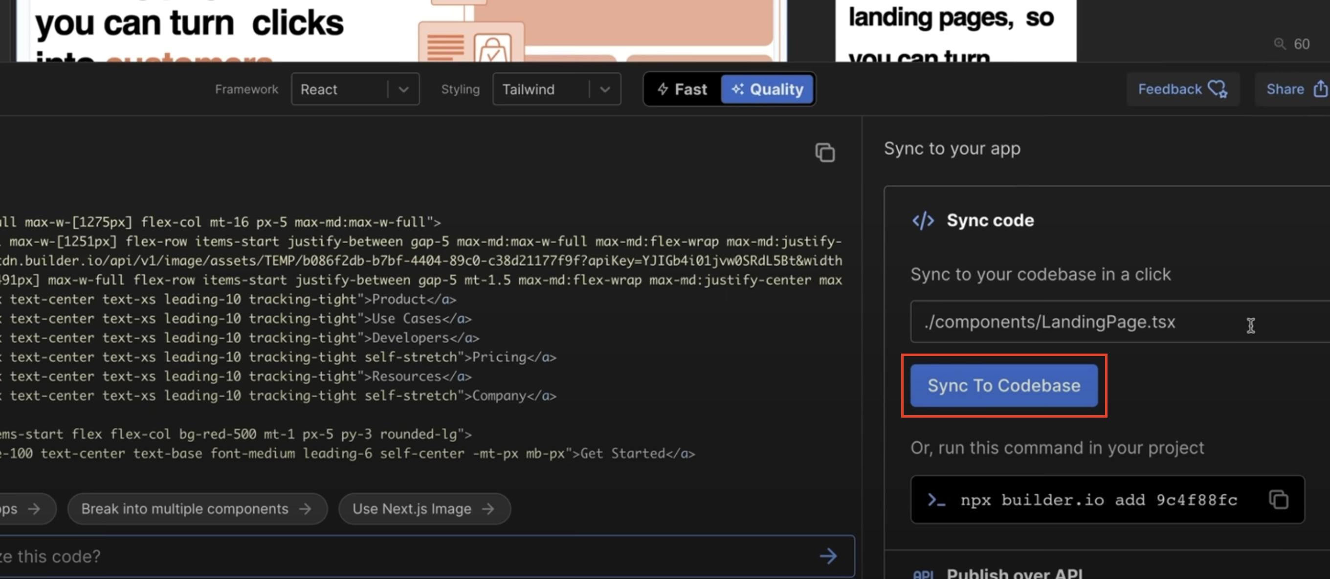 如圖上所示,Visual Copilot 的右下角還有個按鈕「Sync to codebase」,這個是你可以在你既有的 Codebase 中串接 Visual Copilot CLI Devtool,一旦串接起來,就能一鍵將 AI 產出的程式碼同步到你的 Codebase 中。但因為筆者個人沒有這方面的需求,就暫時沒深入研究。