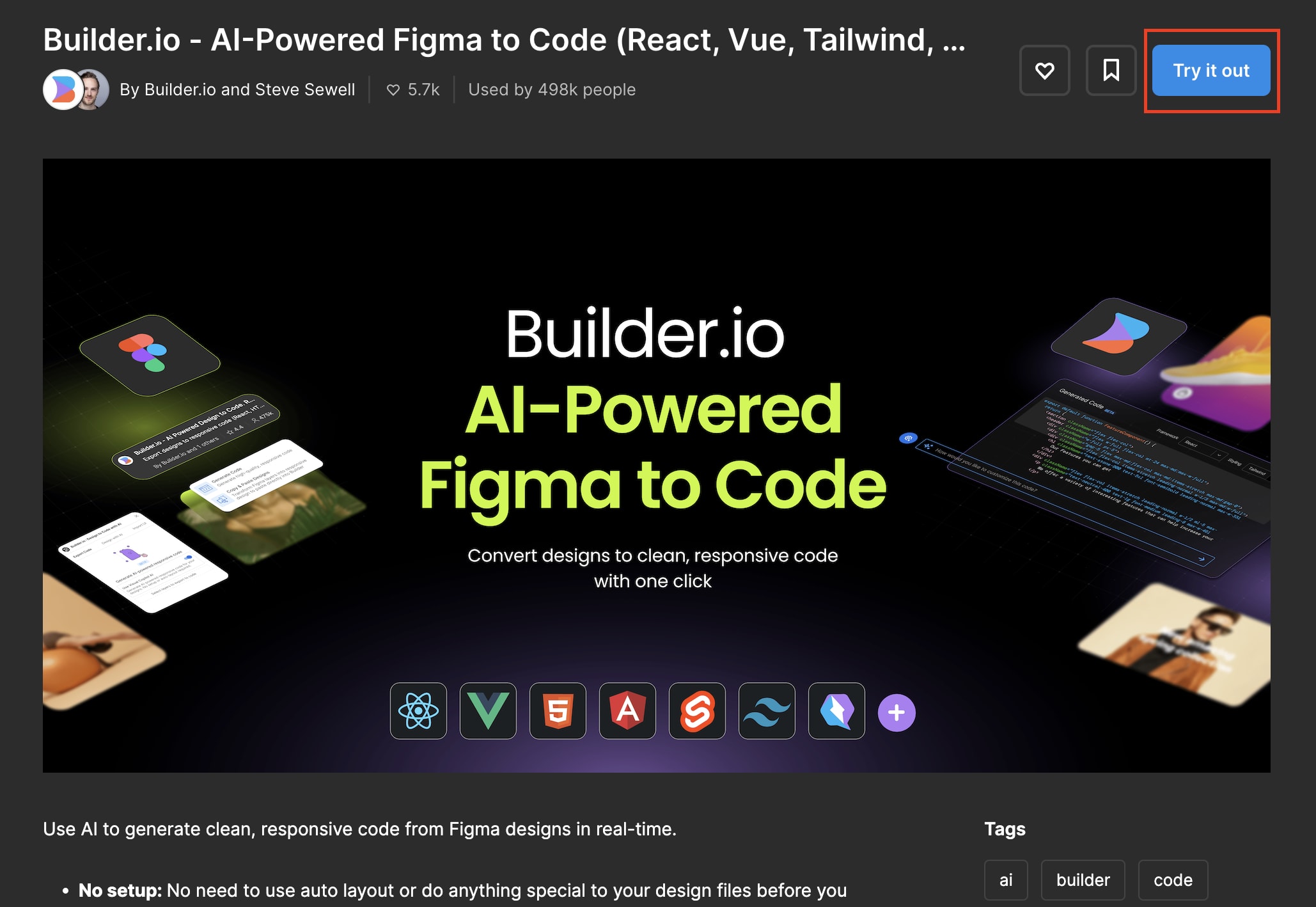 - 由 Builder.io 推出的 Figma-to-code plugin