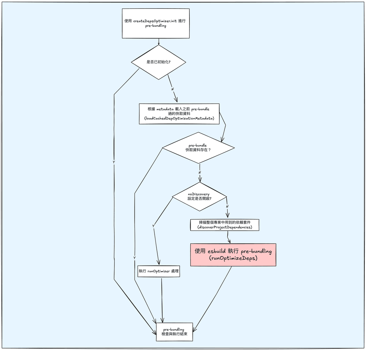 const preparedRun = prepareEsbuildOptimizerRun(...)// 實際用 esbuild 來執行 pre-bundling